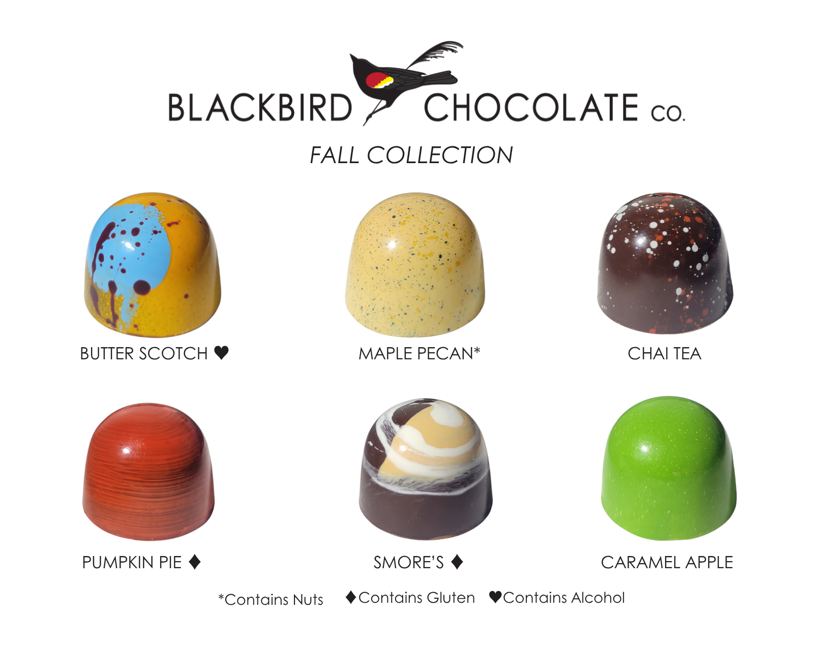 Celebrate the flavors of the season with our handcrafted Fall Collection. Indulge in rich Butterscotch, sweet Maple Pecan, spiced Chai Tea, classic Pumpkin Pie, toasty S’mores, and crisp Caramel Apple. Each bite is made to capture the comfort of autumn and bring a little seasonal joy to your day.